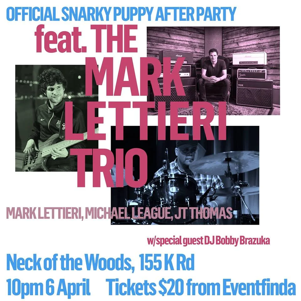 After mind-blowing contemporary jazz legends Snarky Puppy finish their set at the Powerstation on April 6, the party continues on to Neck of the Woods where members of the Grammy winning band will set up and continue playing into the night led by the Snarky Puppy guitar virtuoso Mark Lettieri and his bandmates, Snarky Puppy bandleader and bassist Michael League and drummer Jason Thomas, in the Mark Lettieri Trio.