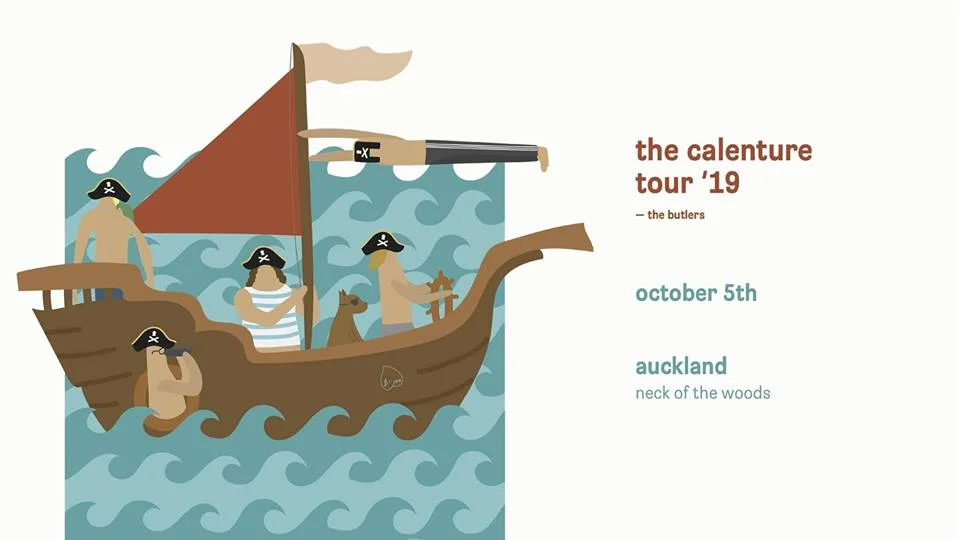 A little bit lost at sea and months since their last New Zealand tour, The Butlers have been pondering on some new material. The five-piece’s new single 'Calenture' takes you through the delirium of love with help from waving, pulsing keys from Stingy Hooligan, deep and heavy drum and bass lines from George and Jordy, and stinging guitar from Bradley and Walt steering the ship.